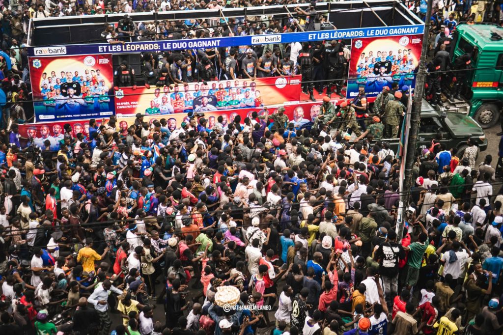 C’est devant des milliers de supporters kinoise que cette sélection nationale a arpenté les différentes artères de la capitale pour communier avec la population après un long périple qui les amener de Guadalajara au Mexique jusqu’au pays. Leur parcours les conduit de l’aéroport international de N’Djili jusqu’à l’esplanade du Palais du Peuple dans la commune de Lingwala où les attendaient une foule immense que rejoindra le président de la République. Ce dernier leur a offert des voitures et des maisons ainsi qu’une prime spéciale.