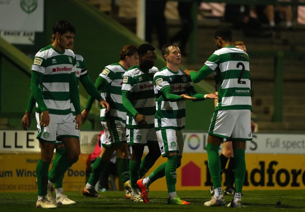 Joy Mukena (N°2 sur la photo) et Yeovil Town se sont imposés (2-0) devant la formation de Tamworth en match comptant pour la 26ème journée du championnat.